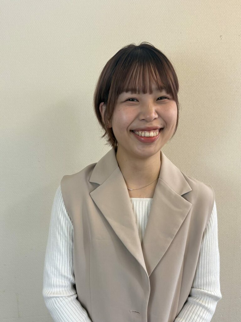 B.D/誕生日:2003.9.24 Hobby:韓国ドラマ、野球観戦 好きなジャンル:シャンプー Flatの好きな所:アットホームで楽しいところ Message:4月から入社しました。気持ちの良いシャンプーが出来るように頑張ります♪